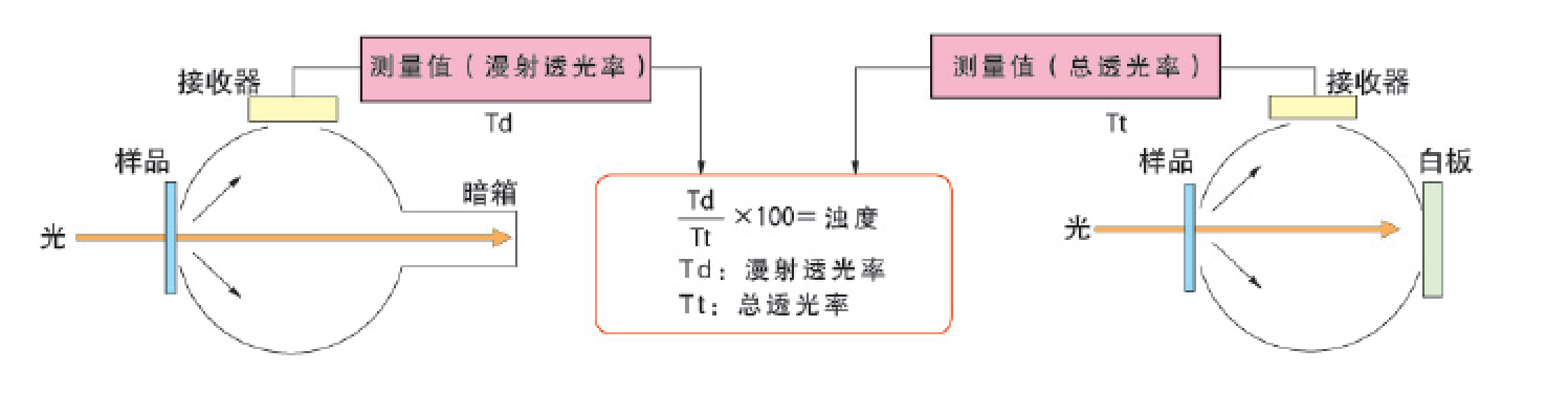 透明材料的散透射比Td與該材料的總透射比Tt的比值被定義為透明材料的霧度,常用百分?jǐn)?shù)表示。若用H代表透明材料的霧度,則有:H=Td/Tt*100%