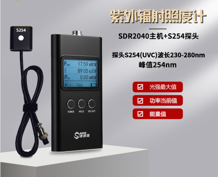 檢測醫(yī)療設(shè)備消毒滅菌情況:SDR254紫外輻照計可以用于檢測醫(yī)療設(shè)備的滅菌燈是否及格,儀器可以準(zhǔn)確檢測消毒滅菌器材的紫外線輻照劑量,確保微生物被完全殺滅。