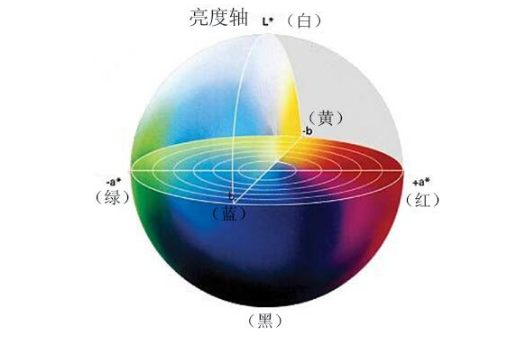 CIE1976 L*a*b*均勻色空間在涂料、建材、油漆等表面色料工業(yè)的配色方面有著廣泛的應(yīng)用,也稱為CIELAB均勻色空間。其中L*為明度坐標(biāo),表征顏色的亮度大小;a*b*為色品坐標(biāo),表征顏色的色調(diào)和飽和度,如圖: