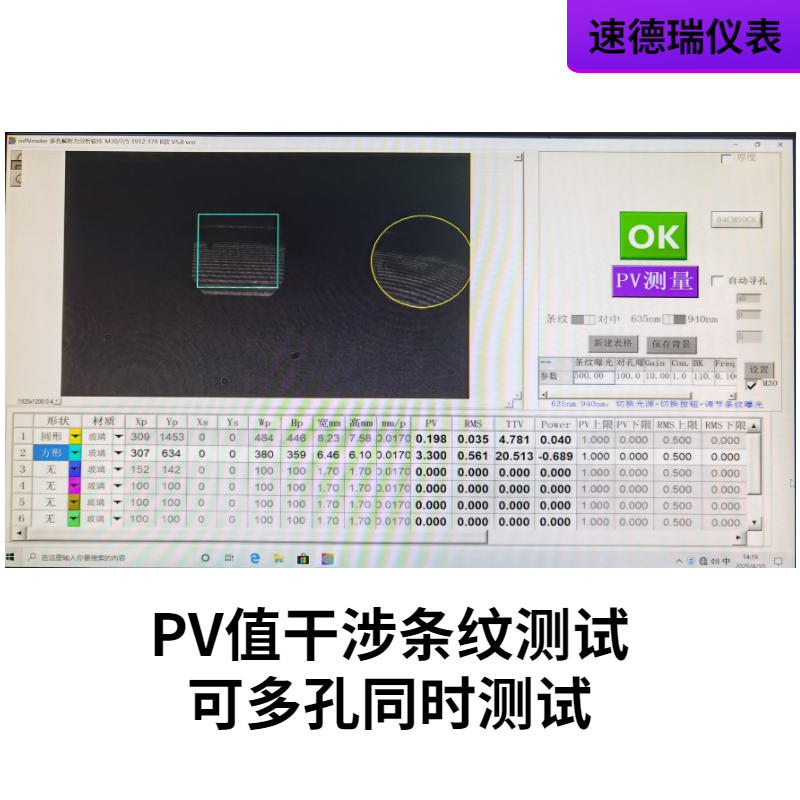 7 | 測(cè)試時(shí)間 | PV測(cè)試:1秒;條紋數(shù)測(cè)試:1秒內(nèi) |