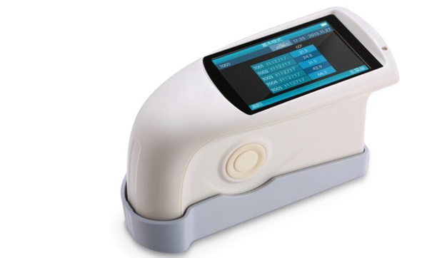 使用速德瑞SDR268 PUIS 三角度光澤度儀測量,無需用儀器標(biāo)配工作標(biāo)準(zhǔn)光澤板校正儀器,目前市面上的光澤度儀很多都智能化,儀器開機(jī)時即可自動進(jìn)行校準(zhǔn)。然后再使用經(jīng)過校正的光澤度儀測量試樣,直接儀器放在試樣上測取讀數(shù)。去三次測試的算術(shù)平均值作為測試結(jié)果。如果兩個數(shù)值之間超過2個光澤單位,則應(yīng)重新取樣測試。光澤度單位一般用GU表示,并將入射角記入括號內(nèi)。